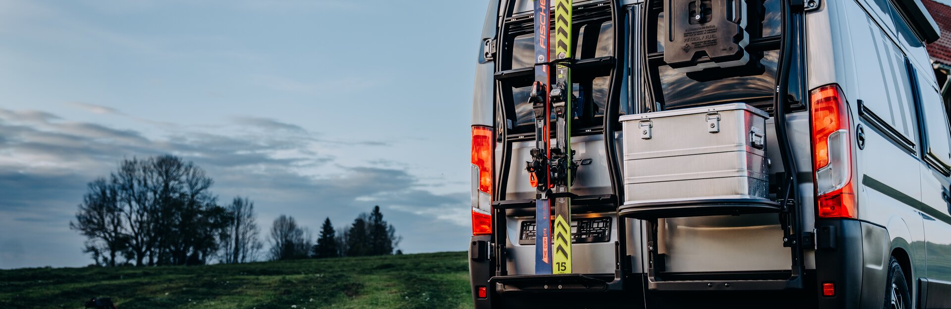 Il porta targa e luci può essere ripiegato e utilizzato anche come gradino, facilitando così l'accesso al camper dalla parte posteriore. Una volta completata la preparazione meccanica, la barra porta targa e luci può essere montata e smontata in un attimo.