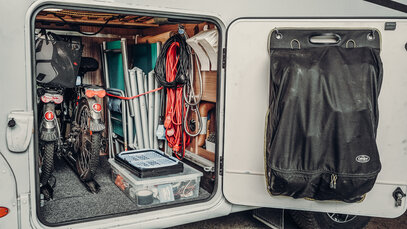 Bietet Platz für zwei Fahrräder, Campingstühle und weiteres Outdoor-Equipment, alles sicher und griffbereit verstaut.