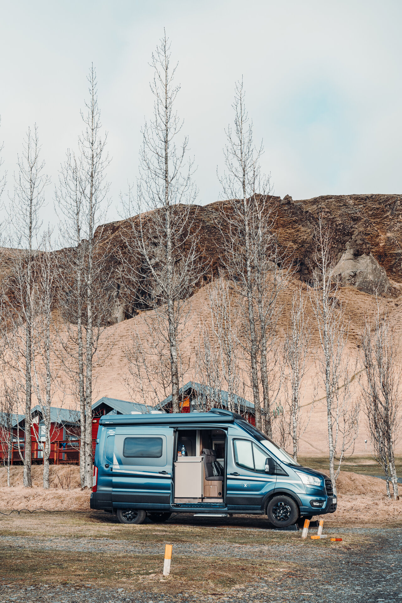 Wir entscheiden uns für den Carado CV590 4X4 EDITION24. Das Modell liefert uns mit Schlafraum für bis zu drei Personen und einer kompakten Fahrzeuglänge von 5,98 Metern den idealen Mix aus Komfort und Flexibilität. Herzstück ist der Allradantrieb. Er analysiert die Bodenhaftung und verteilt das Drehmoment auf die einzelnen Räder. Wir sind also mehr als sicher unterwegs – selbst bei widrigen Fahrbahnbedingungen wie Nässe oder Schnee. Denn trotz Sonnenschein weiß man auf Island nie, was einen erwartet.