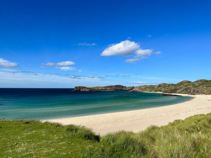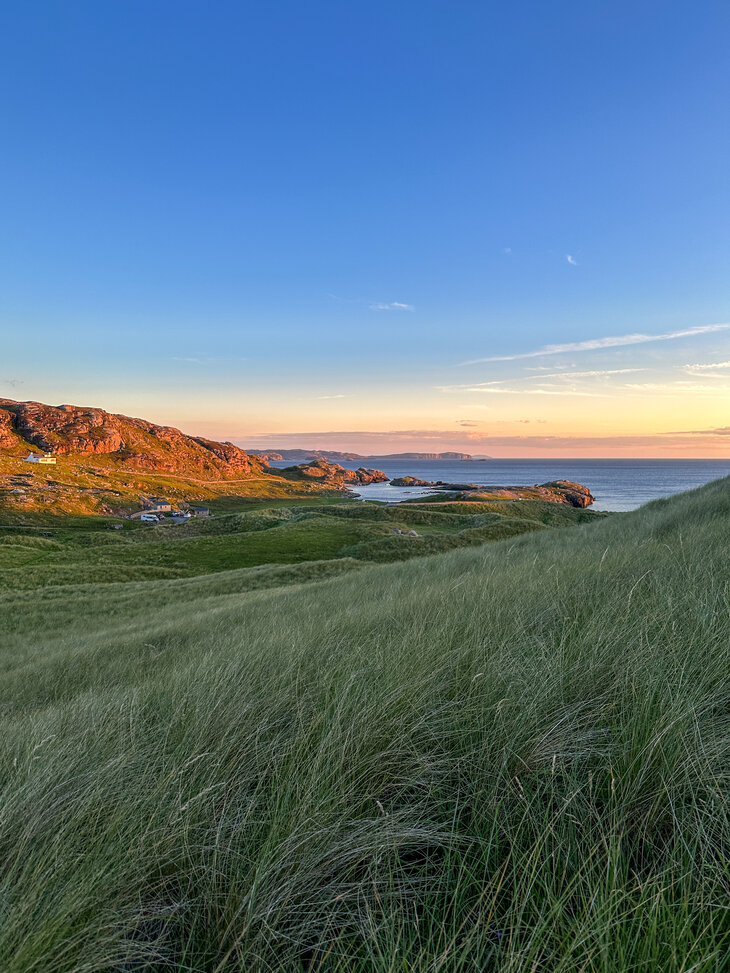 Wenn wir die Strecke noch einmal fahren würden, würden wir wahrscheinlich stattdessen die Route über Altnaharra bis Tongue durch das Landesinnere wählen. Die Gegend rund um Durness ist wunderbar schön! Da es jedoch etwas kälter, sehr windig und bewölkt war, haben wir nur eine Nacht auf einem Wohnmobil-Stellplatz (H796+64C, Durness, Lairg IV27) direkt am Strand verbracht. Der benachbarte Campingplatz Sango Sands Oasis ist malerisch und bei schönem Wetter sicherlich ein Ort, an dem man länger verweilen kann. Auf dem Weiterweg haben wir noch kurz am Balnakeil Beach Halt gemacht. Auch das ist ein großartiger Ort, um zu bleiben!
