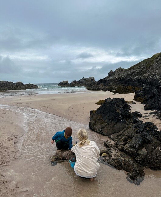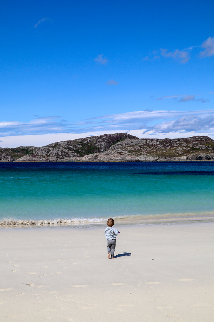 Den nächsten Campingplatz habe ich ein paar Tage im Voraus gebucht, und zwar für fünf Nächte. Denn wie auch schon bei unserer ersten Rundreise durch Südengland, haben wir auch dieses Mal gemerkt, dass es vor allem für die Kinder wichtig ist, auch mal irgendwo anzukommen und länger zu bleiben. Ohne zu wissen, wie schön die Achmelvich Bay ist, habe ich auf gut Glück einen Platz auf dem Shore Caravan Site direkt am Strand gebucht. Ein einfacher, toll gelegener, familiengeführter Campingplatz mit kleinem Shop und Küche. Tipp: Probiert die Chips+Cheese 😊
