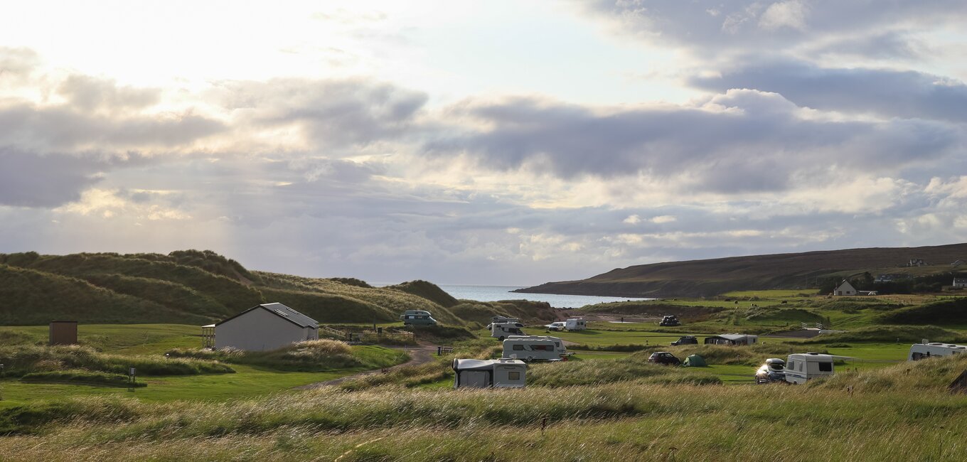 Ursprünglich hatten wir geplant, das Dunrobin Castle zu besichtigen. Es handelt sich um ein wunderschönes Schloss mit einem traumhaften Garten am Meer und mit 189 Zimmern das größte Wohngebäude in den nördlichen Highlands. Wir sind direkt daran vorbeigefahren und haben uns dann spontan dagegen entschieden, da wir alle keine Lust mehr auf Sightseeing hatten. Stattdessen fuhren wir direkt zum kleinen, aber feinen Brora Caravan and Motorhome Club Campsite und verbrachten den restlichen Tag an dem unendlich langen, wunderschönen und menschenleeren Strand. Um dorthin zu gelangen, mussten wir den örtlichen Golfplatz überqueren. Übrigens haben unsere Kinder beschlossen, ihren Schottland-Urlaub zu einem Badeurlaub zu machen und sind in jedem Gewässer schwimmen gegangen, unabhängig von Temperatur und Windstärke. 😉