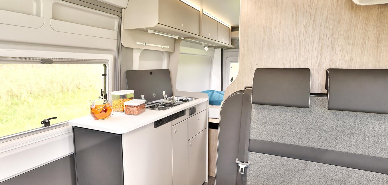 Die clevere Seitenküche ist ein wahres Multitalent. Sie ist nicht nur praktisch und mit allem Notwendigen ausgestattet, sondern auch so konzipiert, dass das Kochen unterwegs zu einem echten Vergnügen wird.