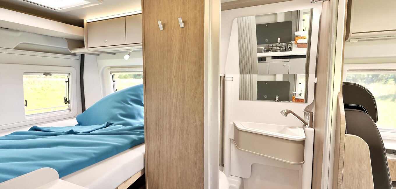 Der Camper Van pro+ bietet mit seinem cleveren Schwenkbad eine praktische Lösung für mehr Komfort unterwegs. Die schwenkbare Konstruktion schafft im Handumdrehen einen separaten Duschbereich. So genießen Sie maximale Flexibilität, ohne auf Komfort zu verzichten – Ihr mobiles Zuhause zum Wohlfühlen.