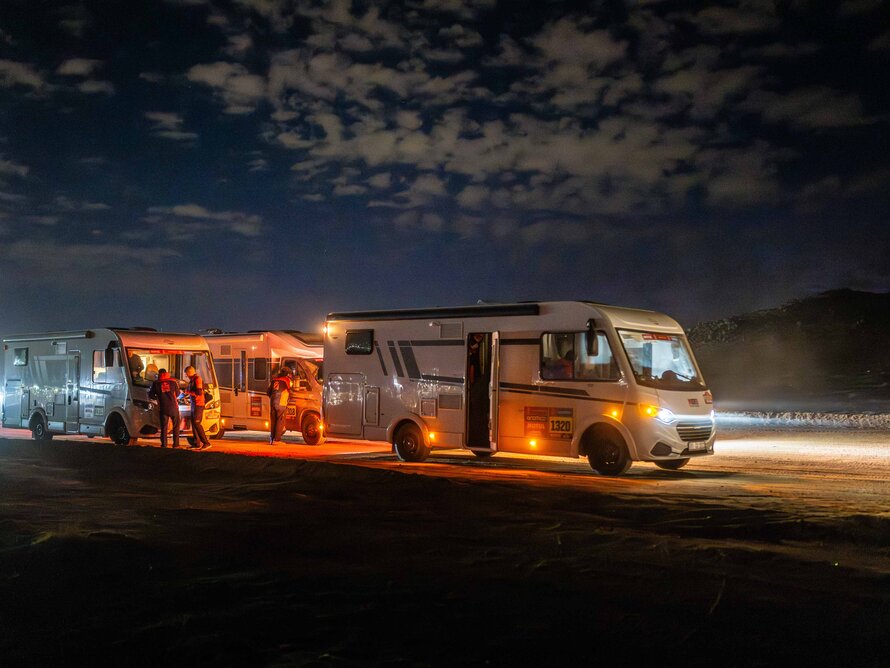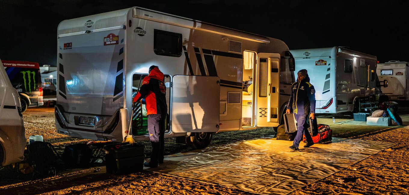 Il y a toujours beaucoup de monde au Rallye Dakar, que ce soit la presse, les supporters ou les organisateurs. Après une étape éprouvante, il est plus qu'agréable pour les pilotes d'avoir un endroit tranquille et confortable où se retirer. Les camping-cars Carado étaient donc le parfait endroit pour se ressourcer et faire une pause en dépit du rythme effréné.
