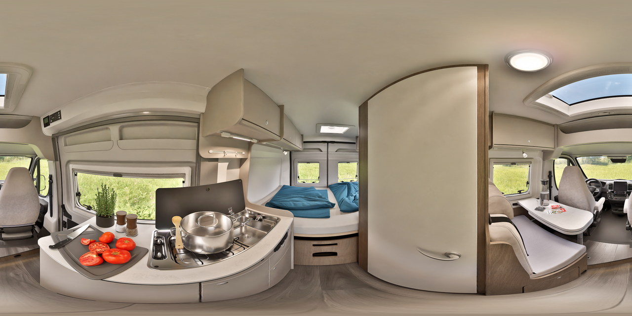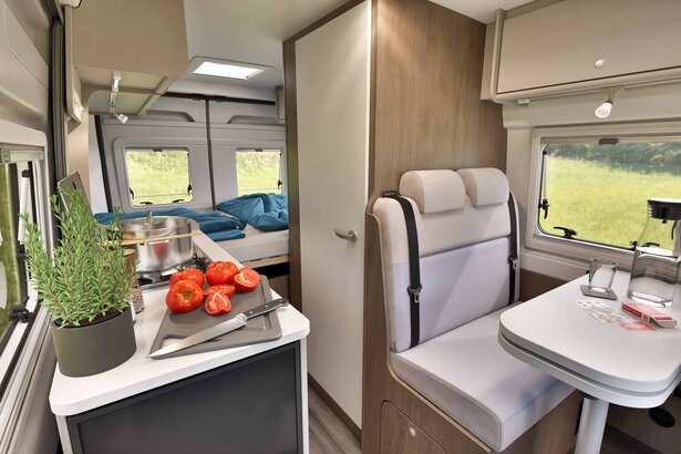 Équipé d'un concept de rangement astucieux, le véhicule garantit une utilisation optimale de l'espace. De nombreux compartiments de rangement et des étagères facilement accessibles garantissent que tous vos objets de voyage sont rangés en toute sécurité et de manière organisée.