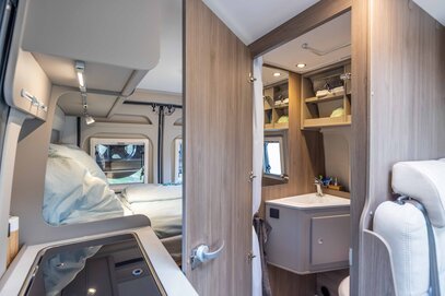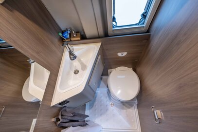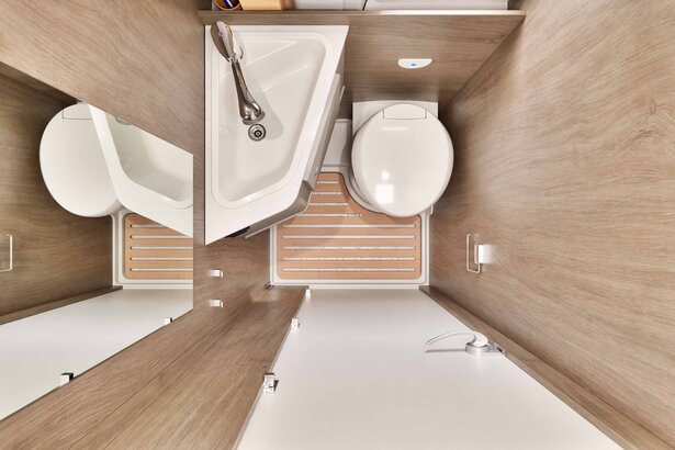 Grâce à sa taille compacte, le CV540 offre une salle de bains astucieusement conçue et équipée de manière fonctionnelle. Elle maximise la fonctionnalité dans un espace réduit tout en offrant un grand confort.