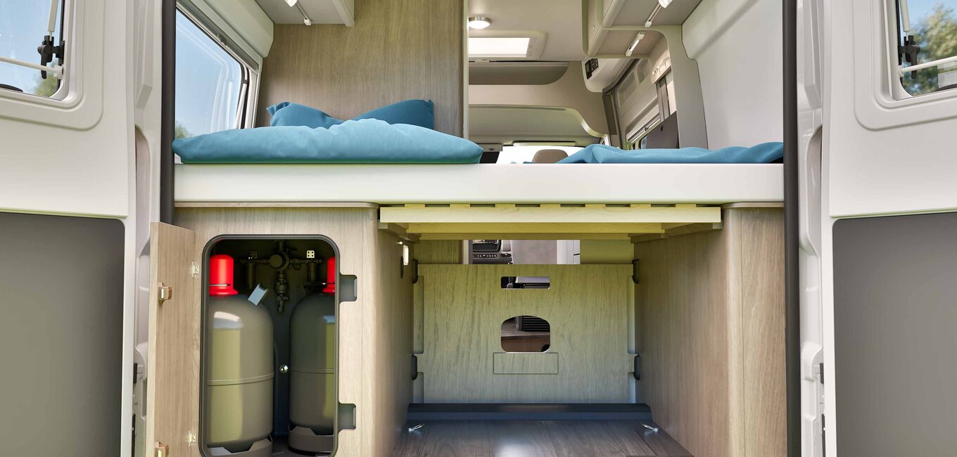 À l'arrière, on trouve un lit transversal spacieux pour passer des nuits reposantes.