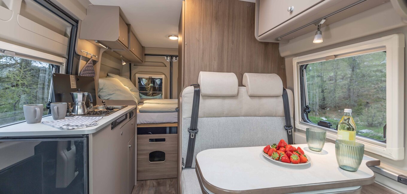 Le Carado CV540 se distingue par son design compact, permettant une utilisation efficace de l'espace et une grande facilité de manœuvre. Idéal pour les voyageurs en quête de flexibilité et d'indépendance, ce modèle offre un excellent équilibre entre confort de vie et mobilité.