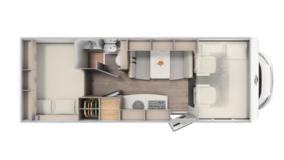 Tous les camping-cars à alcôve sont équipés de cuisines latérales pratiques dont les tiroirs sont dotés de la technologie Servo Soft. Cette technologie garantit une fermeture douce et silencieuse des tiroirs, évitant ainsi les blessures dues aux arêtes tranchantes et aux claquements involontaires. Les glissières robustes et durables résistent à un usage fréquent, ce qui augmente la longévité des cuisines et les rend particulièrement sûres et conviviales.
