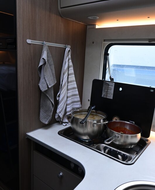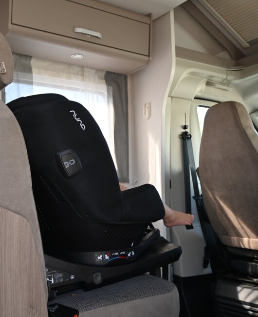 In unserem Wohnmobil gab es vorn ein Hubbett & hinten ein großes Bett. Wir haben das hintere große Bett zu viert als Familienbett genutzt. Wenn es uns mal zu eng wurde, hat Mama mit einem Kind vorn im Hubbett geschlafen, welches mit einem Rausfallschutz an jeder Seite ausgestattet war & dadurch ein sicheres Schlafen auch für die Kleinsten möglich gemacht hat.
