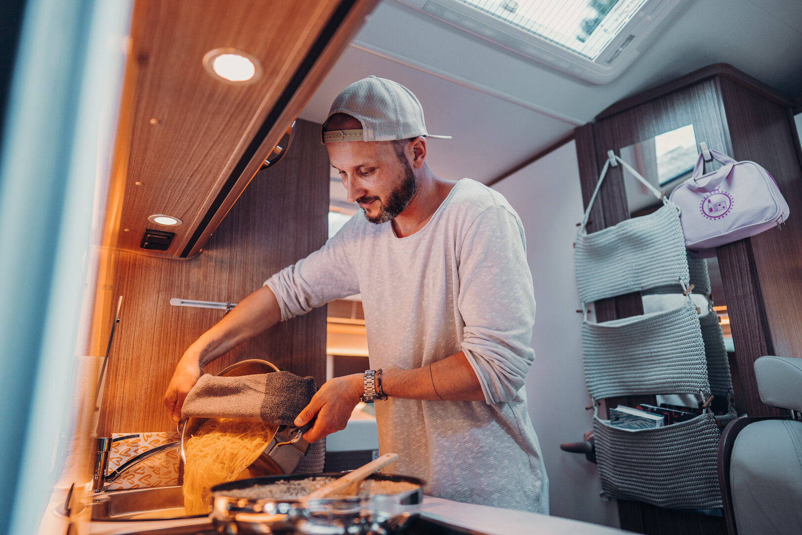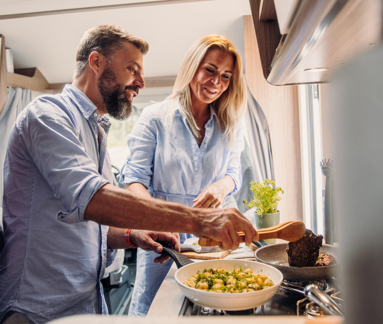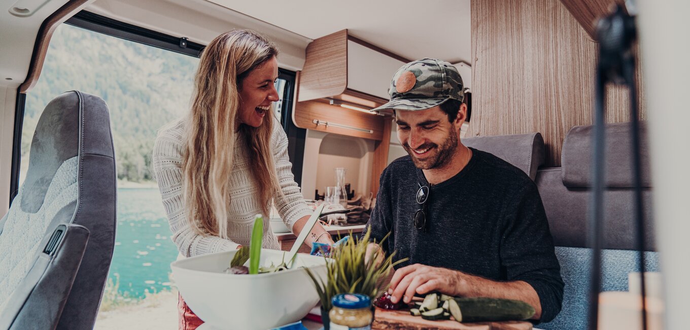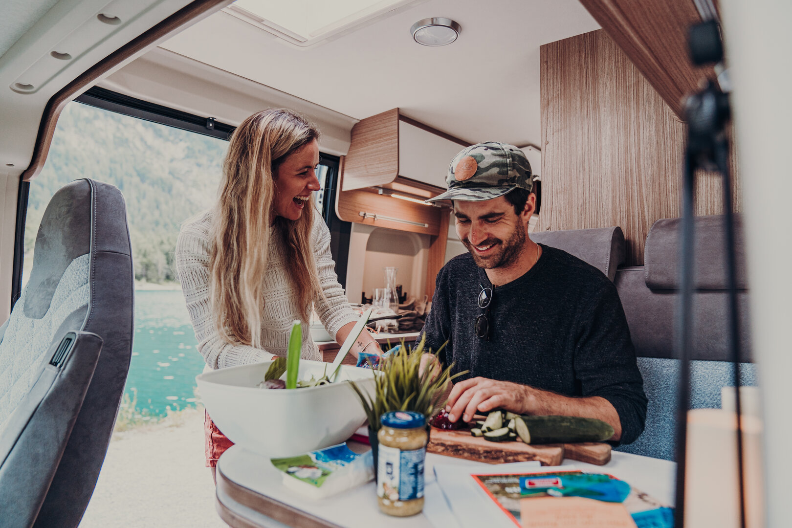 L'époque où les vacances en camping étaient synonymes de cuisine simple est révolue depuis bien longtemps. Au lieu des raviolis en boîte et autres plats préparés, l'accent est désormais mis sur une alimentation saine et variée, tout à fait possible dans un véhicule de loisirs. La dînette astucieuse de votre Carado offre les conditions idéales pour cuisiner facilement de délicieux produits frais même lorsque vous êtes sur la route. Afin de vous inspirer pour votre prochain voyage avec des plats peu coûteux et rapides, mais toujours savoureux, nous avons interrogé notre communauté sur les plats les plus populaires sur la route.