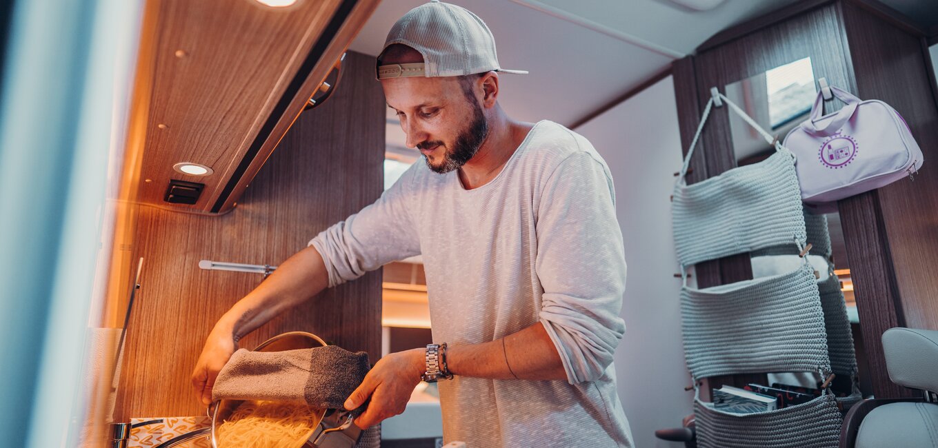 Qu'elles soient nouvelles ou familières, italiennes ou mexicaines, chaudes ou froides, les options de repas lors de votre prochain voyage en camping-car sont aussi nombreuses que variées. Ne craignez pas de devoir vivre sur la route de raviolis en boîte et de tartines beurrées, c’est totalement infondé. En effet, votre Carado dispose d'un espace de rangement plus que suffisant pour ranger en toute sécurité tous vos ustensiles de cuisine et ingrédients, avant et après les repas, et hors de vue pour gagner de la place.