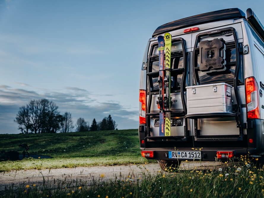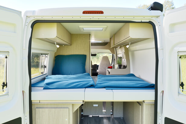 Avec un espace de rangement généreux sous le maxi couchage, il y a suffisamment de place pour y ranger tout son matériel de camping et ses bagages. Grâce à un accès facile, tant depuis l'extérieur que l'intérieur du camper van, l'espace de rangement sous le couchage arrière s'avère extrêmement pratique et permet d'utiliser efficacement le volume disponible.