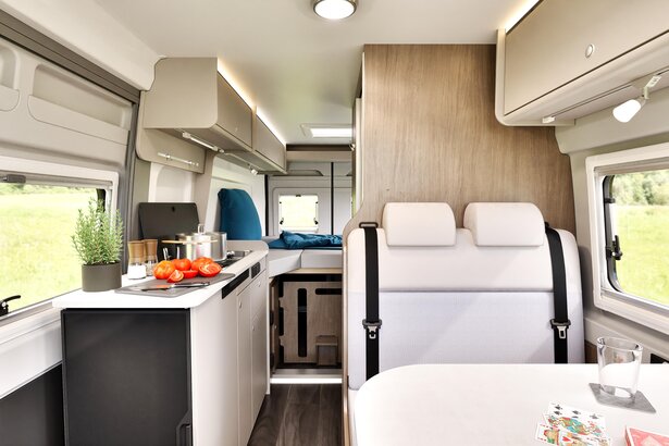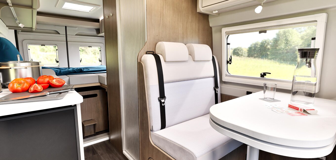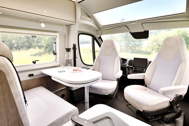 La dînette n’est pas seulement confortable, elle est aussi fonctionnelle. Avec des sièges conducteur et passager pivotants, des prises USB optimisées et une table ajustable, vous obtenez un espace qui vous ressemble et où vous aimerez passer du temps.