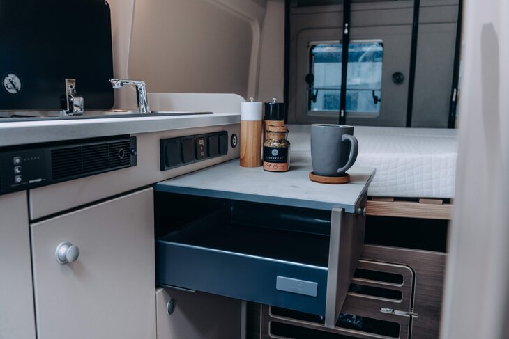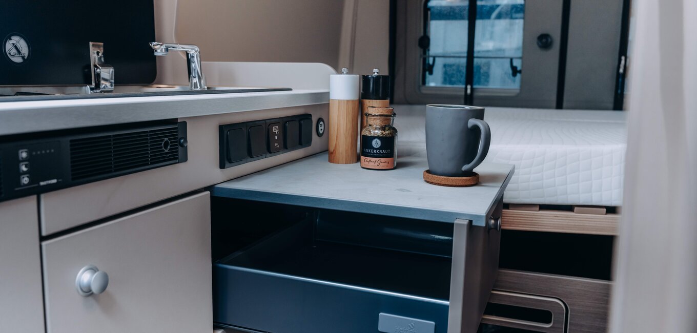 Chaque détail du camping-car est conçu avec soin, pour garantir une organisation optimale et un confort général.