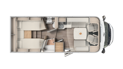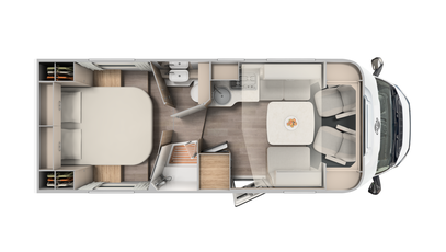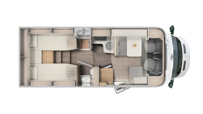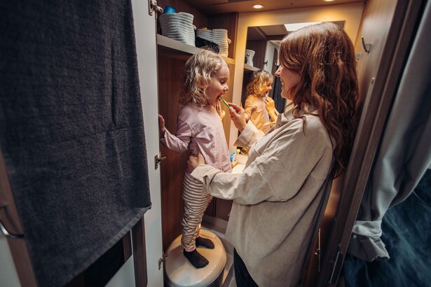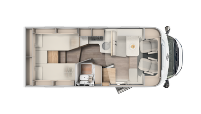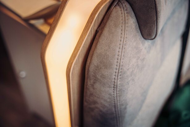 Stig ind. Føl dig godt tilpas. Indirekte belysning, robuste sædebetræk på de ergonomisk formede, polstrede møbler og en masse praktiske detaljer. F.eks. USB-porte, energibesparende LED-belysning og selvfølgelig det elektriske trappetrin.