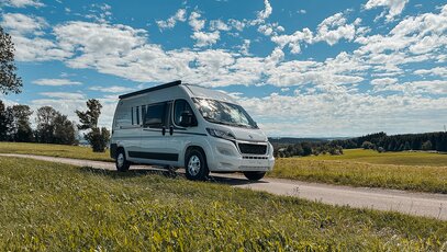 Experience the Carado camper van on a Peugeot Boxer chassis: compact, with plenty of storage space, modern bathroom, panoramic view and spacious sleeping area in the rear - open the doors and enjoy independence!
