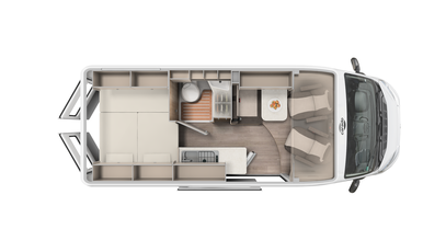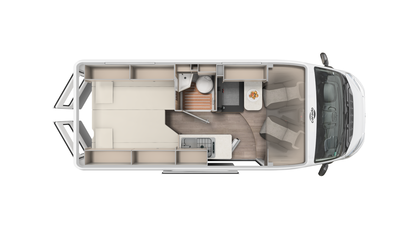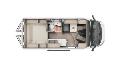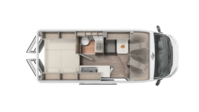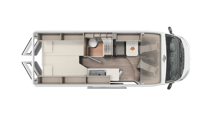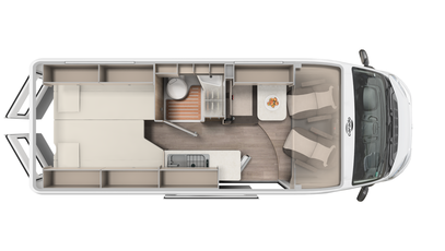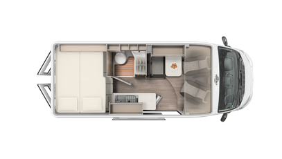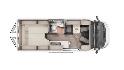Best views: Enjoy the view through the panoramic window in the cab. Everything stowed away - wardrobe, overhead and floor cupboards offer plenty of space for your holiday.