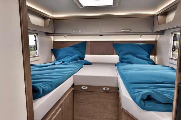 Bedtime becomes a comfortable experience. The pull-out single beds with wooden slatted frame transform into a spacious sleeping area in no time at all to ensure restful nights when travelling.