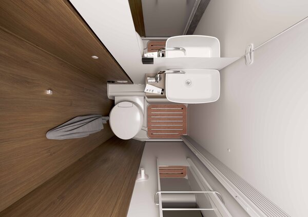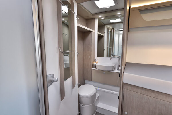 Carados spacious bathrooms offer one thing above all: a functional room concept with maximum comfort for a relaxed start to the day. Whether separate shower room and toilet or combined - generous storage space is available. A cassette toilet with electric pump and rotating seat, large mirror surfaces and many other features are optimally integrated into the room.