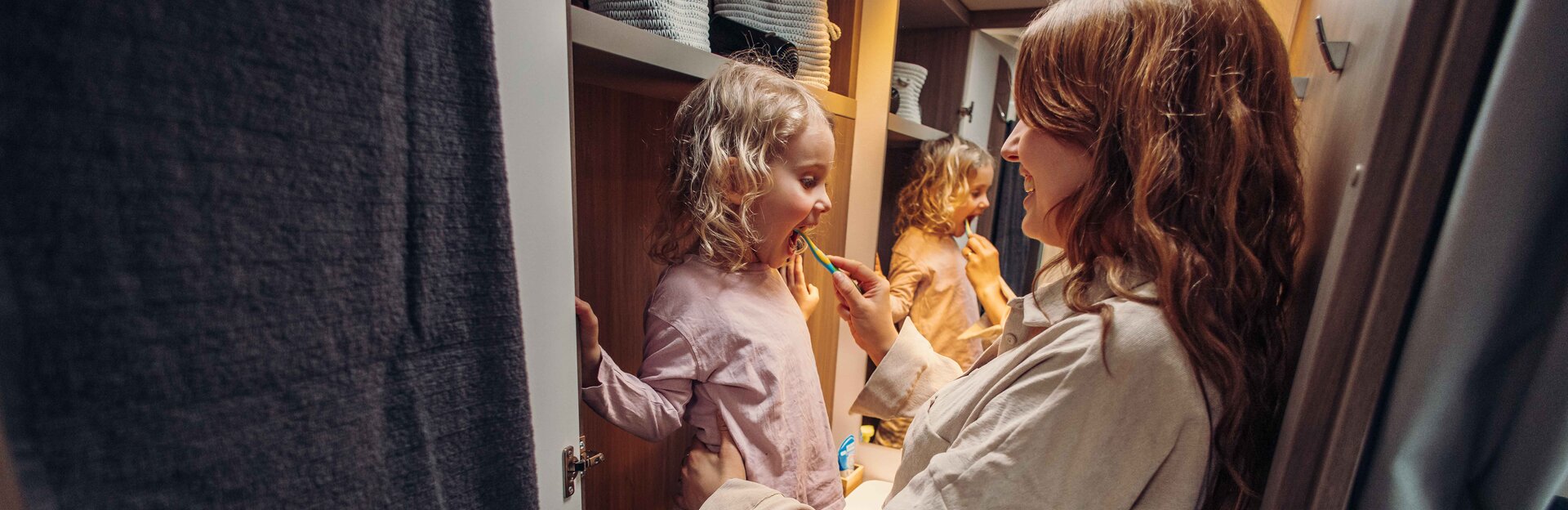 Which models are equipped with which bathroom? Discover your perfect variant in this overview, all bathrooms are completely individual and are various shapes and sizes!