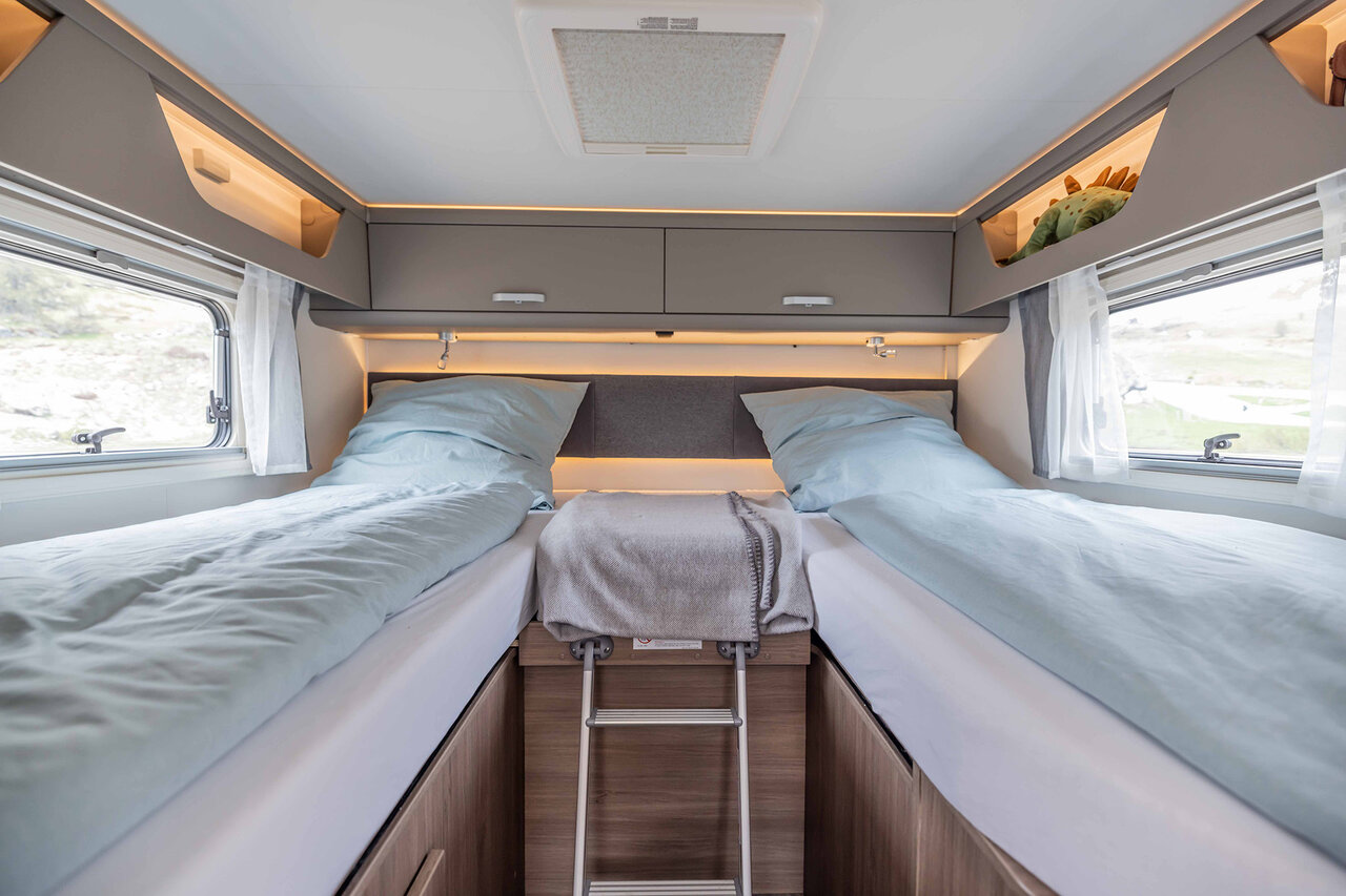Er du høyere enn gjennomsnittet og stadig møter begrensninger i sengeplass? Eller ønsker du bare en seng med litt mer plass til å strekke deg ut? Ikke alle bobiler vil matche dine forventninger til sengekomfort og størrelse, men jo flere valgmuligheter en produsent tilbyr, desto større er sjansen for å finne den perfekte sengen og bobilen for dine behov. Carado gir deg mange alternativer for en god natts søvn med 23 modeller som tilbyr enkeltsenger, tverrstilte senger, queen-size-senger og dobbeltsenger. Og med de fleste av dem kan du velge å oppgradere sengestørrelsen.