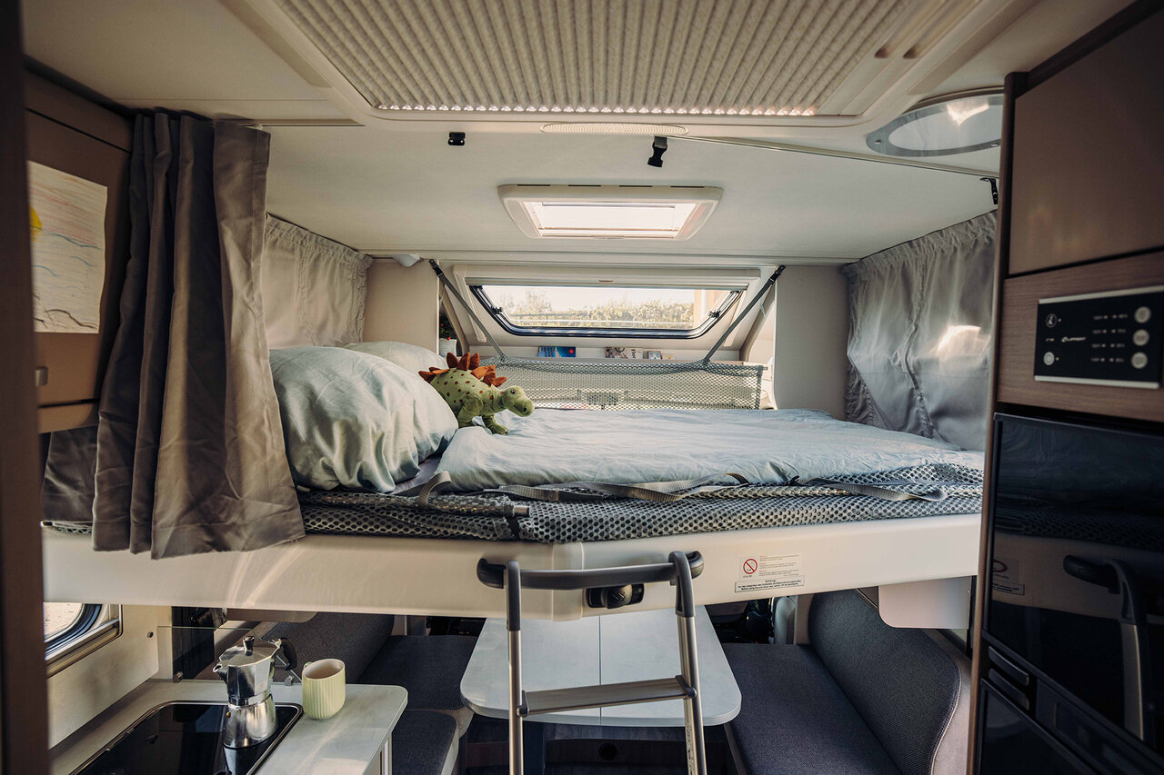 Kvalitet betyr noe, også på veien. Mange Carado-kunder forteller oss at de noen ganger sover bedre i bobilen enn hjemme. Dette skyldes dels den perfekte balansen mellom elementene i standarddesignet, og dels muligheten for å tilpasse sengen med spesialtilbehør eller skreddersydde løsninger. Madrassen bør gi god støtte til kroppen, være pustende og effektivt transportere bort fuktighet. For nye bobileiere anbefaler vi å teste sengen i et par netter for å selv oppleve komforten ved å sove i en Carado.
