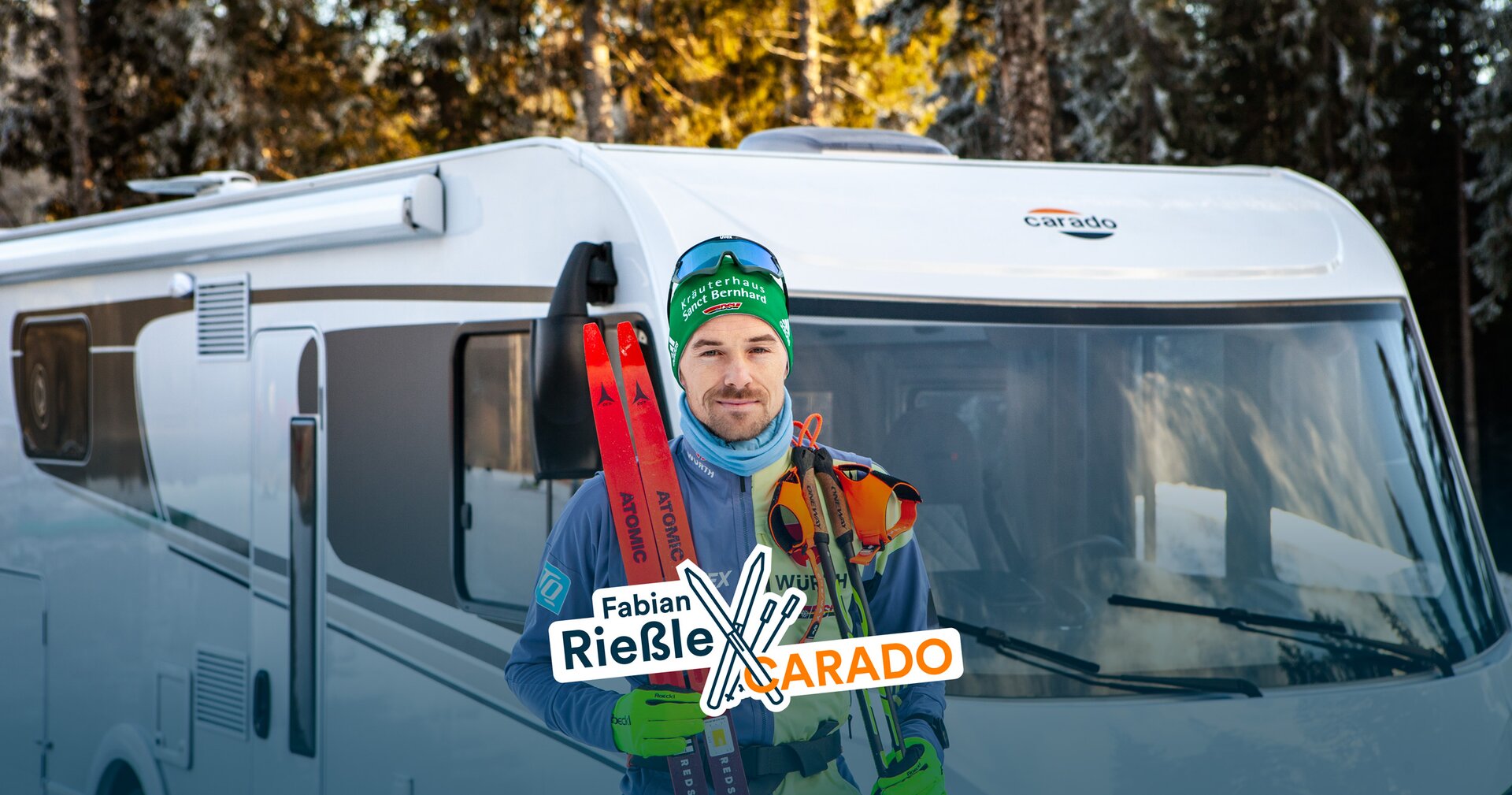 Olympic champion Fabian Rießle is one of them: in his free time, the Nordic combined skier enjoys travelling to numerous cross-country skiing areas in a Carado motorhome with his wife Sandra and daughter Paula. A practical combination for the man from Freiburg: the vehicle makes it easy to drive to campsites and cross-country ski trails. After a day on the trails, the Carado is the perfect retreat for Fabian. He stows his sports equipment in the rear, freshens up with a hot shower and rounds it all off with dinner.