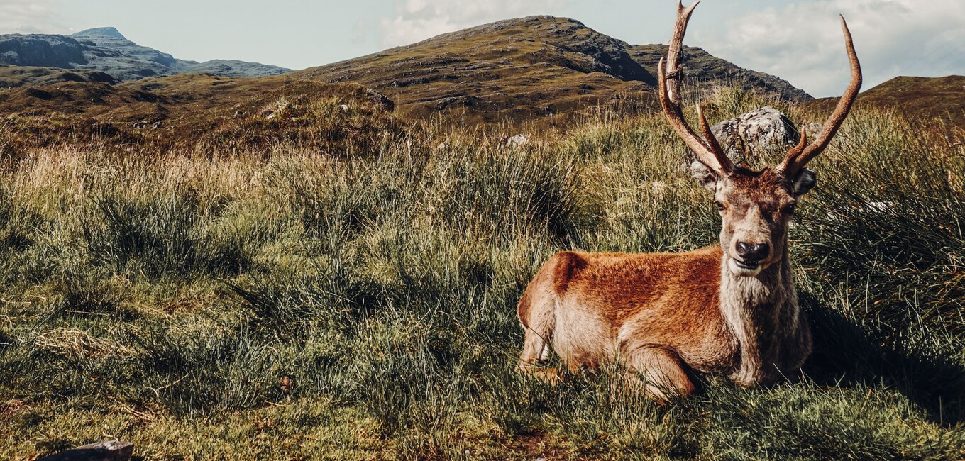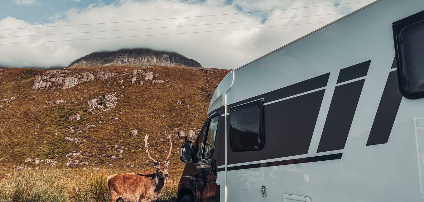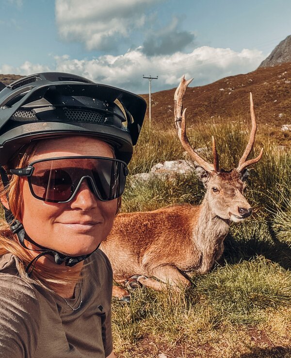 The last 15 kilometres to Torridon are on a single-lane gravel road. Just before the town, there are some perfect places to spend the night. When I woke up on one of these pitches on my first morning in Torridon, I was amazed to be greeted by a stag right outside my window. The deer didn't move away when I left my camper to get my bike ready - on the contrary, it scanned my front wheel with its antlers and sniffed the rims.