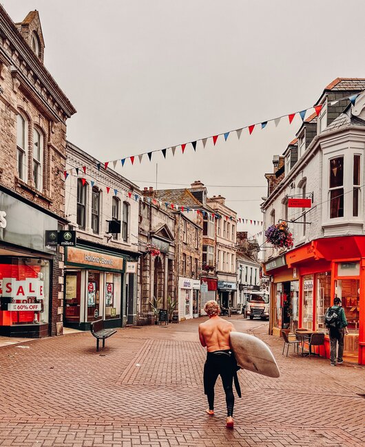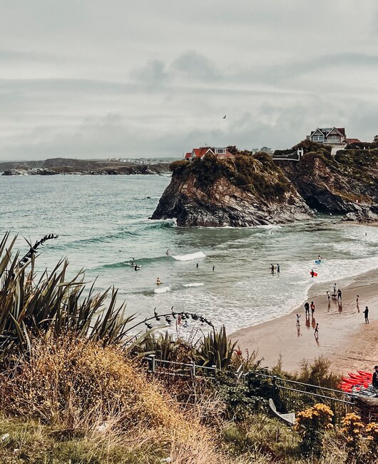 Both places are paradises for surfing. I parked the V339 in Newquay for a few nights. There are several car parks there for a daily fee of around six pounds, where you can also park overnight. Newquay is particularly busy in summer. Many tourists, mainly from more northerly areas in England, appreciate the traditional English town right by the sea. I found the mix of surf culture and Old English Town particularly exciting. You can walk directly from the beach to the pubs in the town to treat yourself to a portion of pub food after a few hours in the water. Croyde is about 2.5 hours north of Newquay. The road to Croyde, or almost all "roads" in Cornwall, turned out to be an adventure - narrow, single lane and with earth or stone walls on the left and right. And then there's the oncoming traffic. There are many bays to avoid oncoming traffic, but even these bays are often of little help with a motorhome, as they usually offer barely enough space for a car. I was also greeted by beautiful sandy beaches in Croyde, which I would never have expected in England. It's unbelievable how tropical the beaches look - turquoise water and the finest sand are reminiscent of Fiji or Hawaii. Only the temperatures of 16 to 18 degrees quickly make you realise that you are in England.