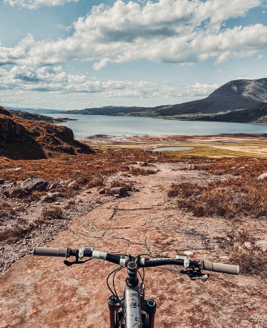 After my wildlife experience, I set off in search of the Lollipop Trail, which was recommended to me for Torridon. Unfortunately, no one prepared me for how rough the trail would be uphill. I pushed or carried my bike for four hours. Once I reached my destination, however, the views of lakes and even the sea as well as the beautiful mountains made up for the effort. The descent right down to the sea was breathtaking.