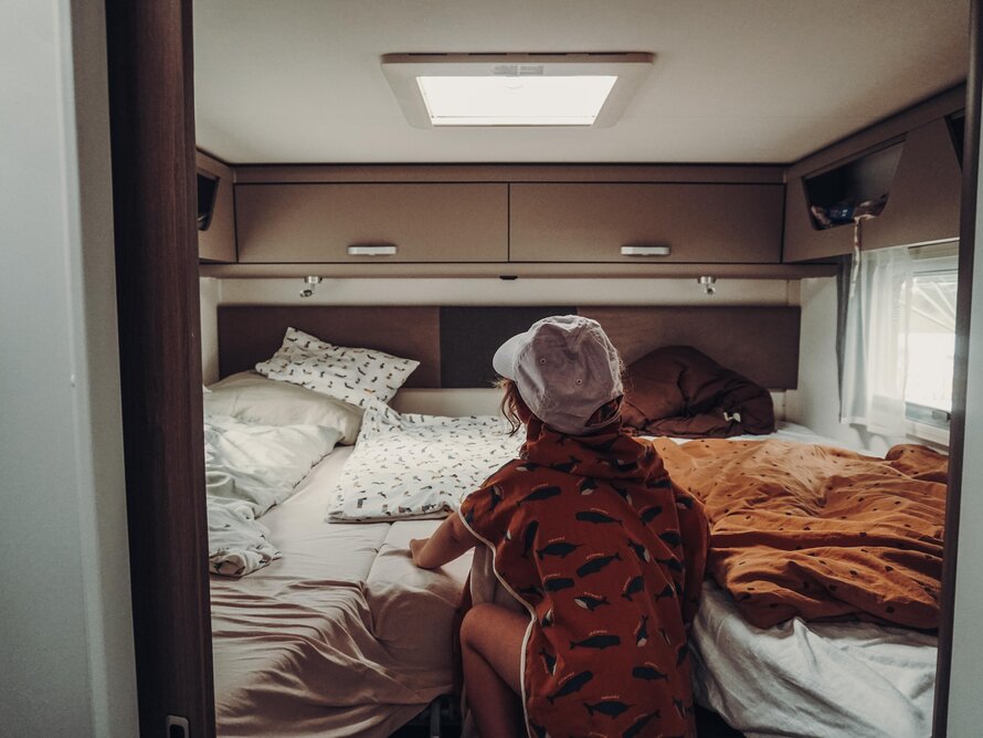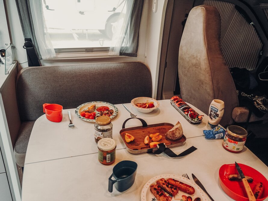 On a rainy day, we converted the motorhome into a large cuddly meadow where we told stories and Tavi enthusiastically explored her new ‘caves’ in the storage space. She was particularly proud of a new habit: showering, which had never been her favourite until then, suddenly became a favourite activity in the T457. Cooking together was also a pleasure - the fully equipped kitchen enabled us to prepare fresh meals every day. We got fresh milk and eggs from the farm next door, which we turned into wonderfully fragrant fried eggs in the morning. For the evenings, we bought regional specialities from the local butcher, which we also prepared in the motorhome.