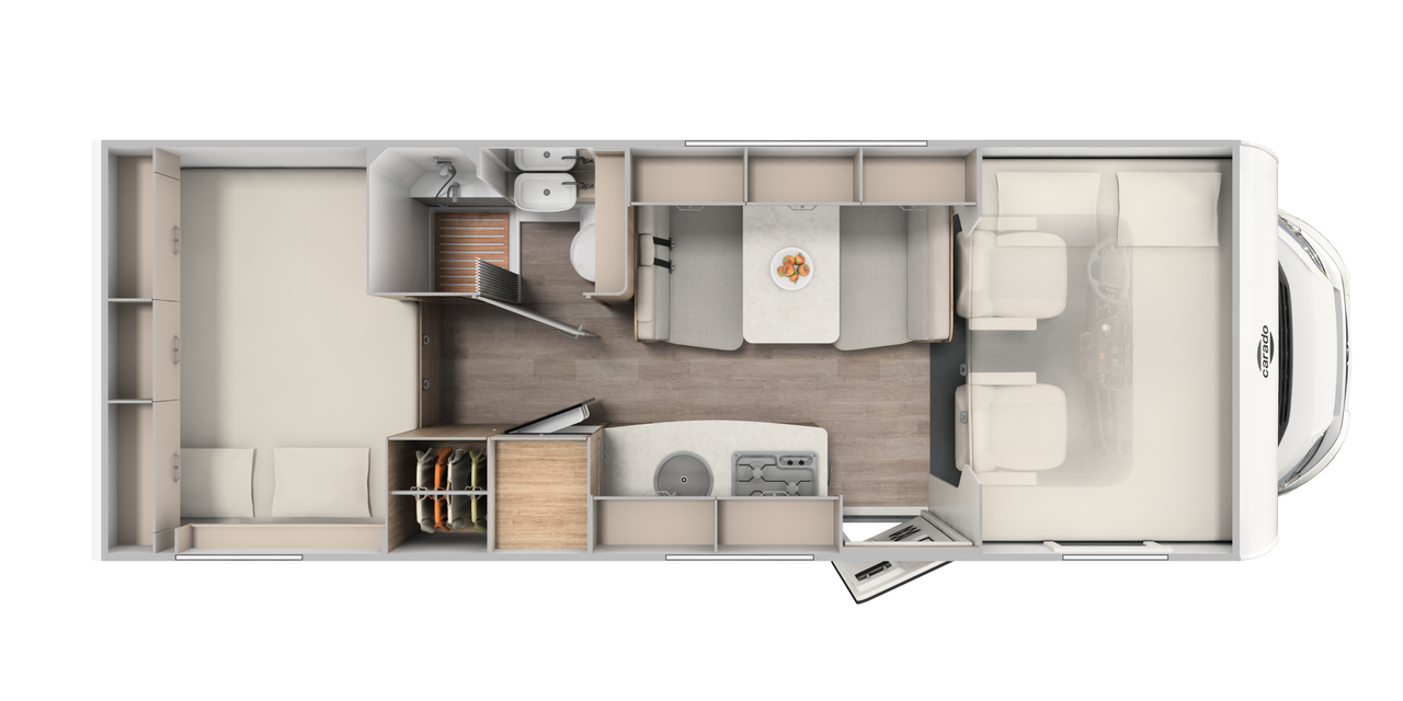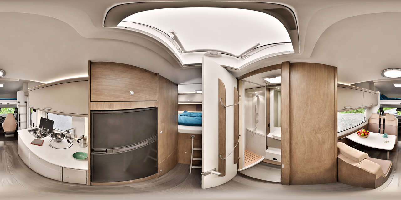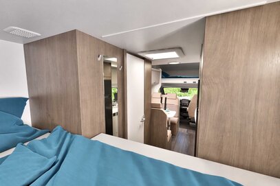Alkoven imponerer med et smart designet komfortbad som inkluderer et separat dusjrom, ideelt for reisekomfort og privatliv. Høykvalitets sanitærutstyr og gjennomtenkte detaljer sikrer vanlig komfort selv på farten, noe som gjør A464 til en perfekt bobil for langdistanse reisende.