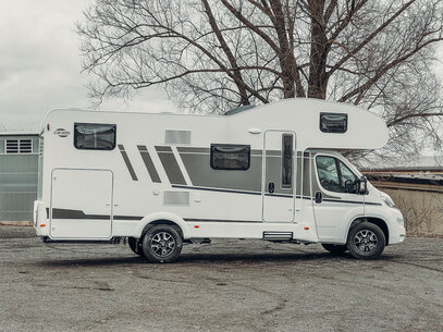 Alkovebobil A464 tilbyr imponerende plass for opptil seks personer, med to romslige dobbeltsenger og en stor garasje – ideell for familieferier og gruppeturer. Den gjennomtenkte planløsningen og det kompakte designet gjør denne bobilen til den perfekte følgesvenn for de som verdsetter komfort og mobilitet uten å ofre bekvemmeligheter.