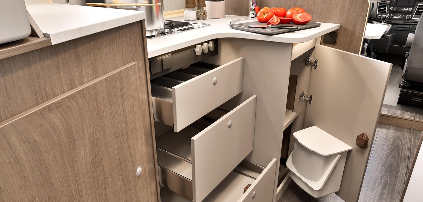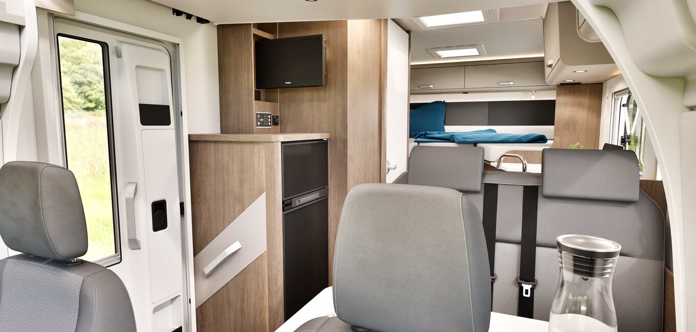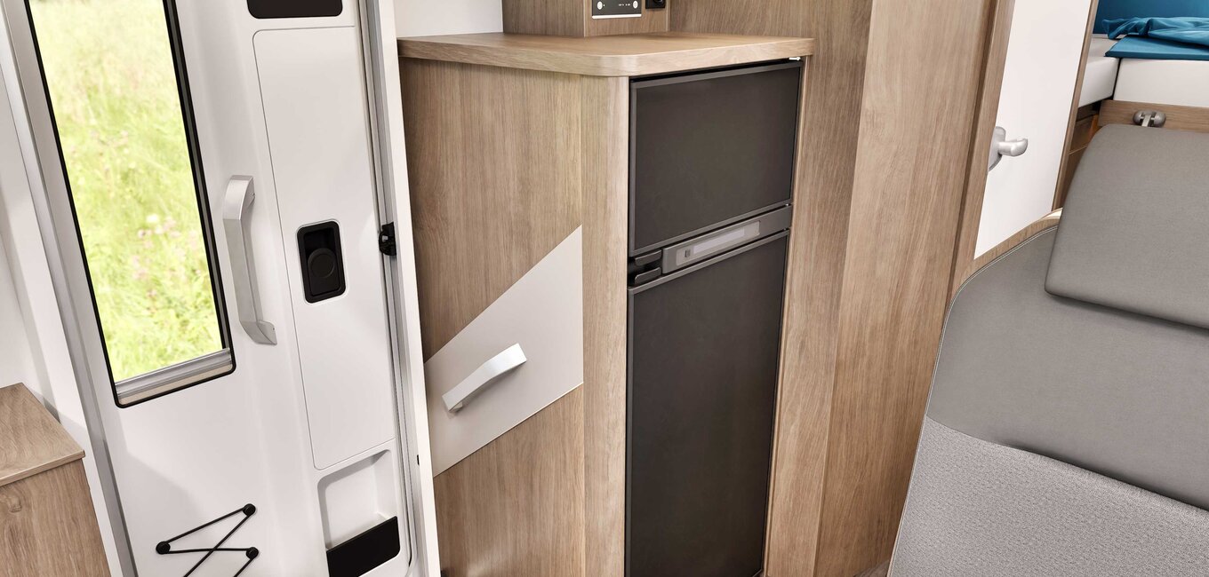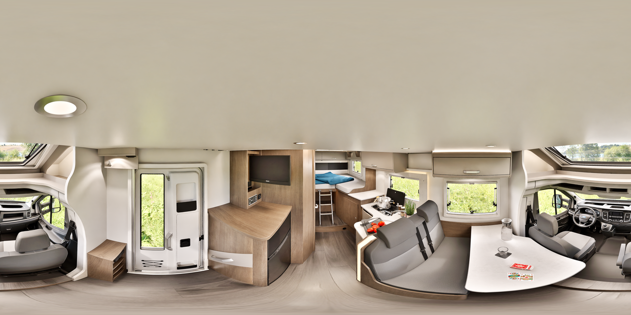 Carado T338 EDITION26 imponerer med sitt smarte karosseri. Den er enkel å manøvrere, samtidig som den har nok plass til at du kan føle deg komfortabel på veien. Det halvintegrerte kjøretøyet har rikelig med oppbevaringsmuligheter i hele kjøretøyet.