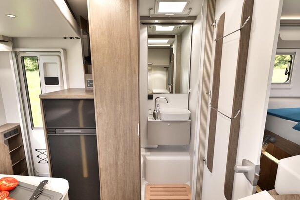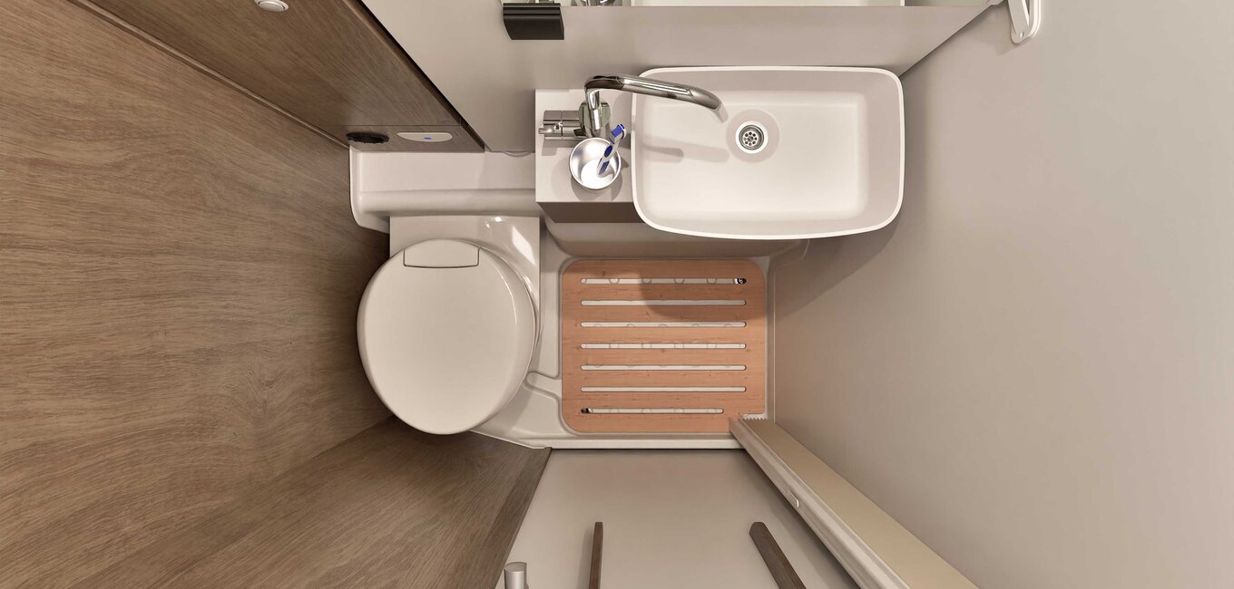 Vario-baderommet kombinerer funksjonalitet og bekvemmelighet på et minimalt areal. Her finner du alt du trenger for din personlige velværeopplevelse på reisen.