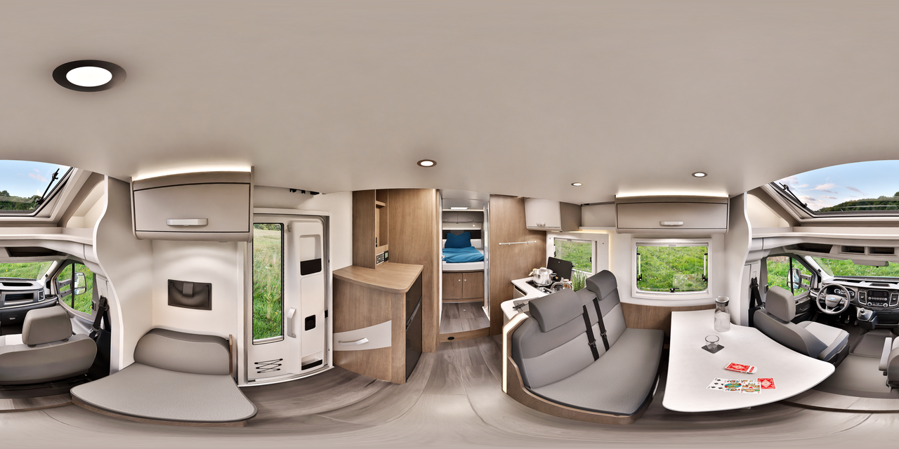 Carado T449 imponerer med sitt romslige og intelligent utformede karosseri. Den perfekte balansen mellom funksjonalitet og komfort gjør den til en ideell følgesvenn på alle reiser. Nyt den sjenerøse plassen for avslappende stunder og felles opplevelser.