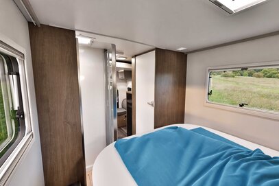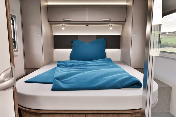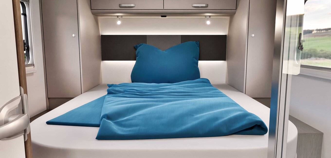 Et ekte soverom - selv når du er på farten. Queen-size-sengen er lett tilgjengelig fra alle sider. Feel-good-vibber døgnet rundt.