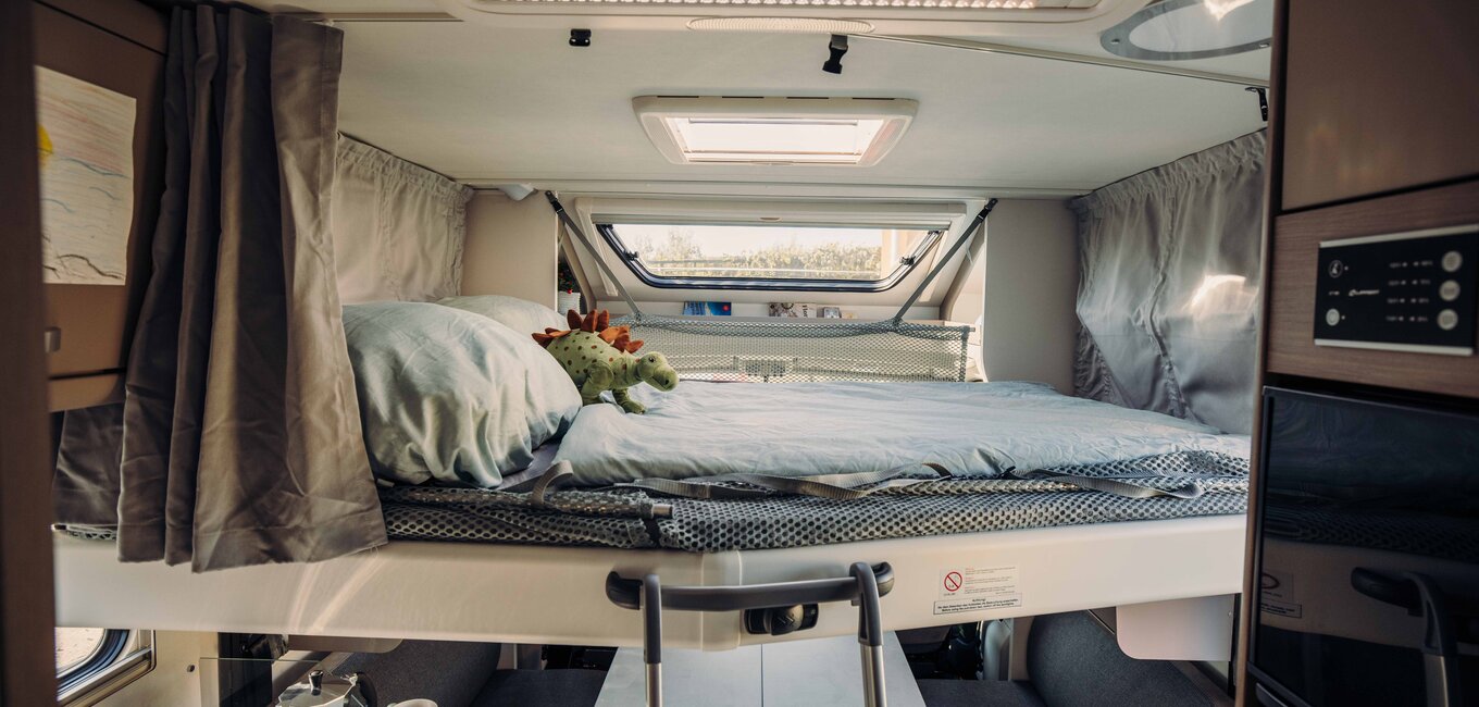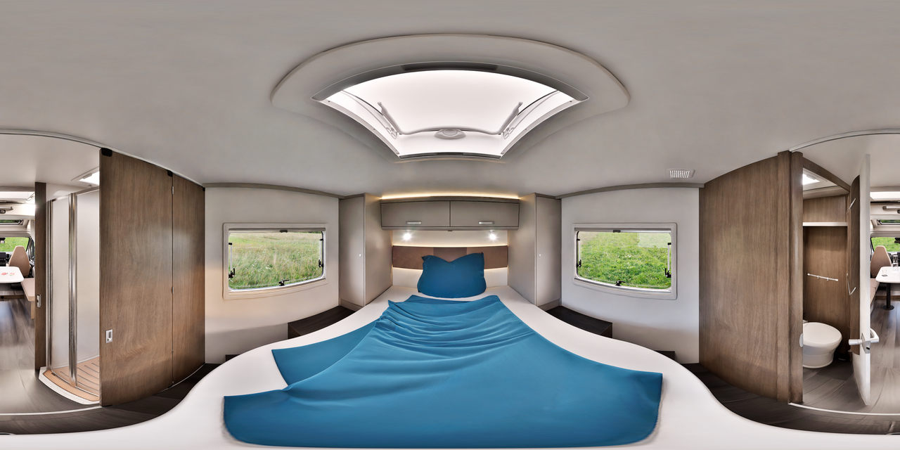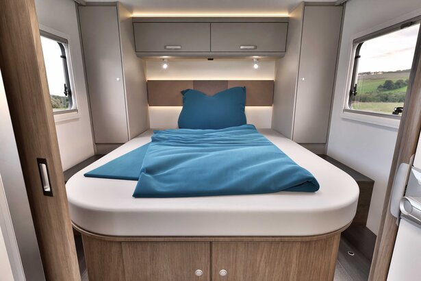 Den store queen-size sengen gir en utrolig sovekomfort. Den elegante paneleringen av den bakre sengen forvandler soveområdet til en liten velvære-oase.