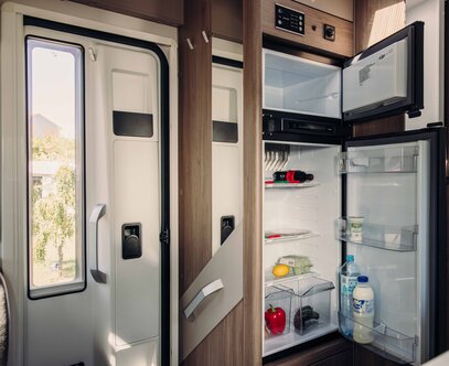 Det valgfrie større kjøleskapet har plass til alt: frukt, grønnsaker eller en forfriskende drikk.