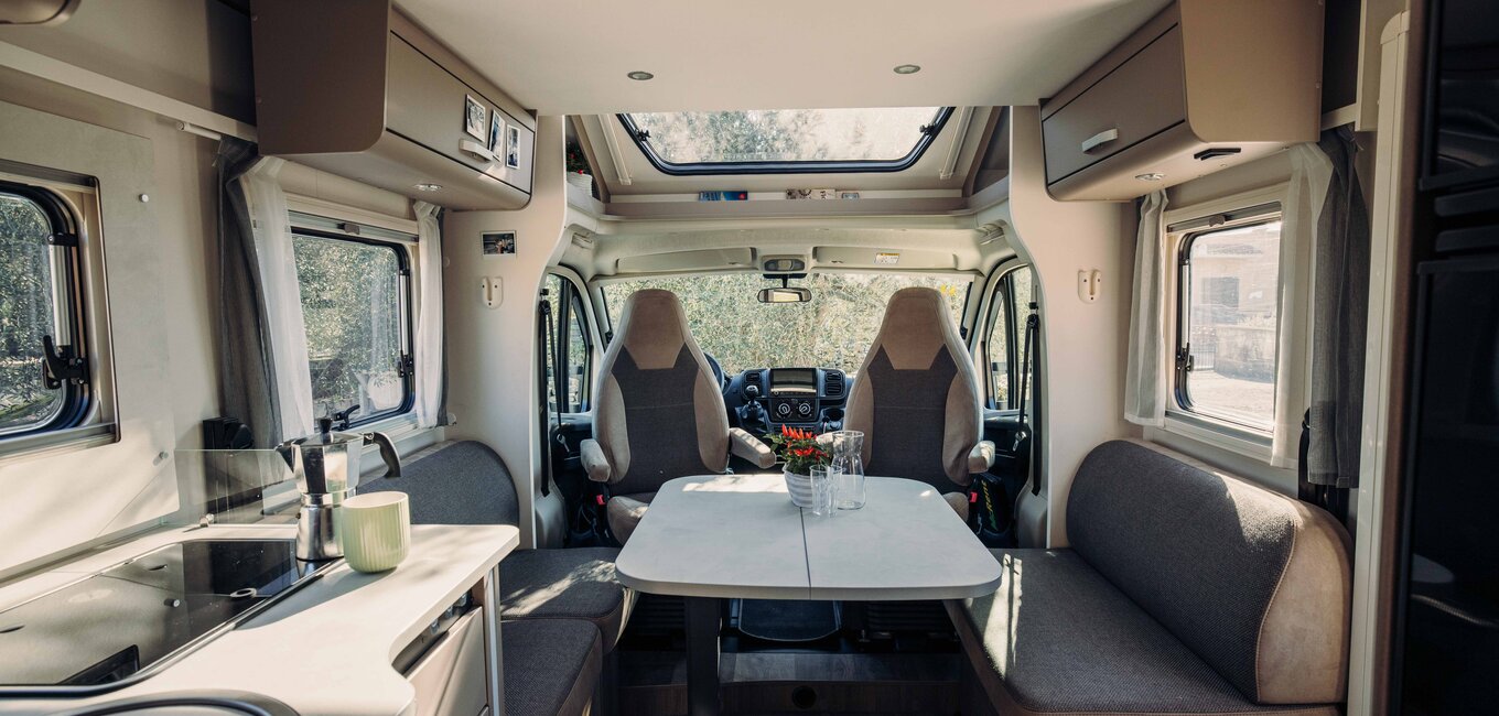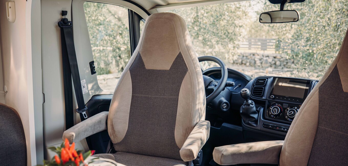 Et sted å trives – de dreibare fører- og passasjersetene skaper en innbydende sofa/couch-sittegruppe i Carado, som kombinerer kos og fleksibilitet.