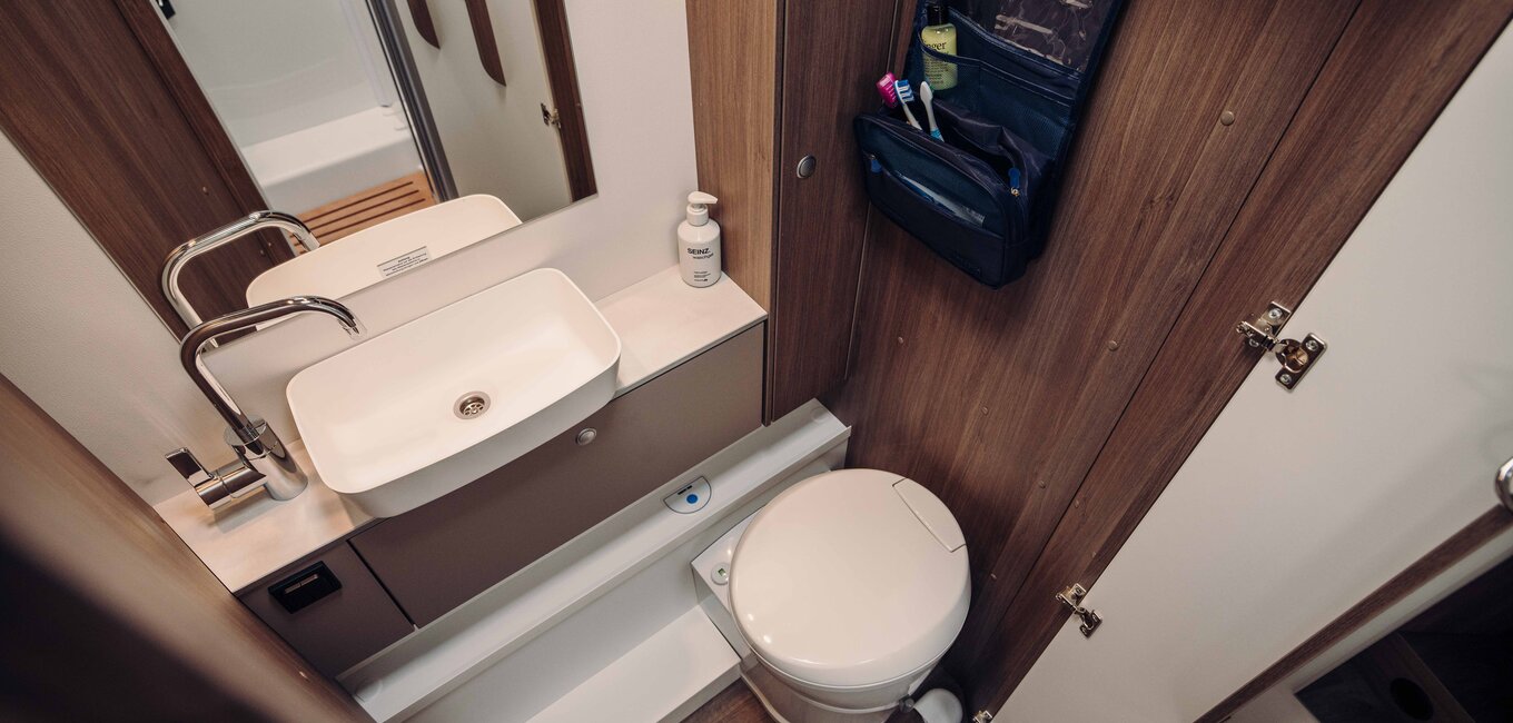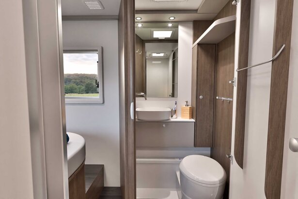 Komfortbadet kan på et øyeblikk forvandles til et drømmebad for reise. Vaskerommet og den separate dusjen kan kombineres til et stort åpen-plan bad med en forbindelsesdør