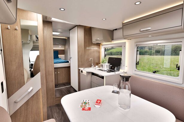 T459 tilbyr ikke bare en lengde på 7,39 meter, men er også spesielt designet for å møte hele familiens behov. Det åpne stueområdet med Face to Face-sittegruppe skaper en innbydende atmosfære for å nyte uforglemmelige øyeblikk sammen.